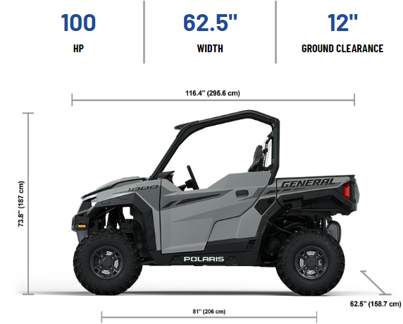 | Overall Vehicle Size (L x W x H) | 116.4 x 62.5 x 73.8 in (295.6 x 158.7 x 187 cm)* |