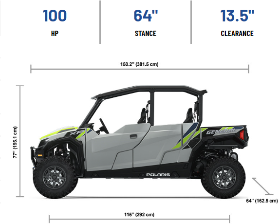 | Overall Vehicle Size (L x W x H) | 150.2 x 64 x 77 in (381.5 x 162.5 x 195.1 cm) |