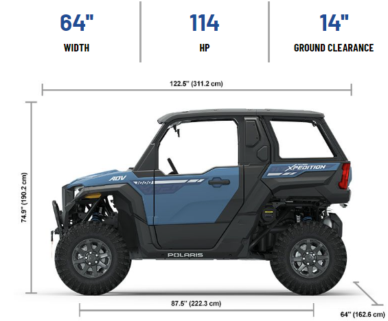 | Overall Vehicle Size (L x W x H) | 122.5 x 64 x 74.9 in (311.1 x 162.5 x 190.2 cm) |