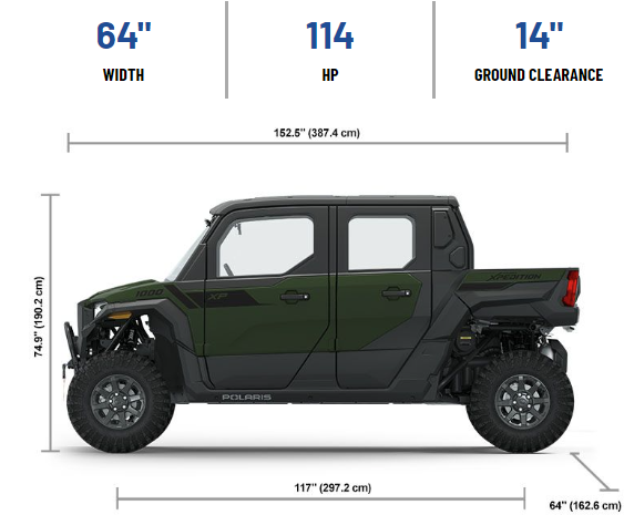 Overall Vehicle Size (L x W x H) 152.5 x 64 x 74.9 in (387.3 x 162.5 x 190.2 cm)