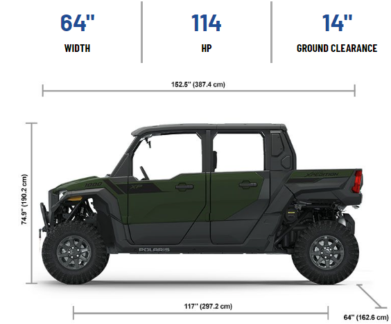 Overall Vehicle Size (L x W x H) 152.5 x 64 x 74.9 in (387.3 x 162.5 x 190.2 cm)