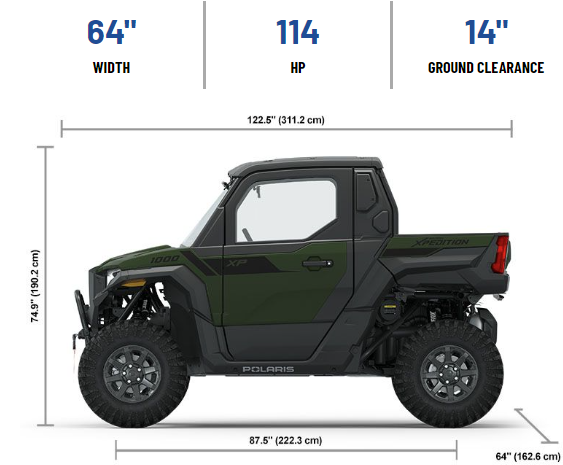 | Overall Vehicle Size (L x W x H) | 122.5 x 64 x 74.9 in (311.1 x 162.5 x 190.2 cm) |