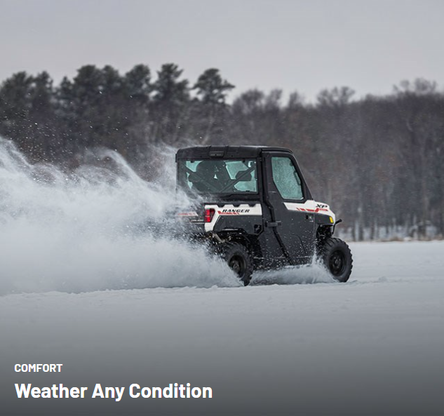 Whatever you do, enjoy it in any weather with enclosed cab options, available seating for up to 6, and accessories designed for rain or shine.
