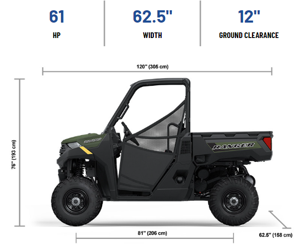 | Overall Vehicle Size (L x W x H) | 120 x 62.5 x 76 in. (305 x 158 x 193 cm) |