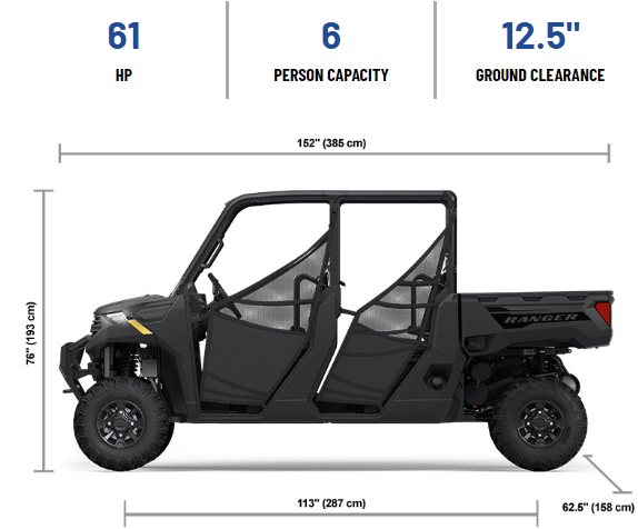 | Overall Vehicle Size (L x W x H) | 152 x 62.5 x 76 in. (386 x 158 x 193 cm) |