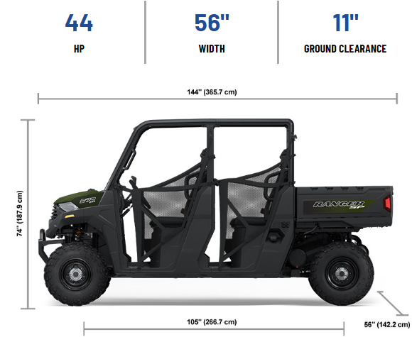 | Overall Vehicle Size (L x W x H) | 144 x 56 x 74 in. (365.8 x 142.2 x 188 cm) |