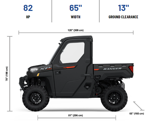 | Other Standard Features | Polaris HD 4,500 Lb. Synthetic Rope Winch with Autostop and Wireless Remote, Premium Pro-Shield Cab, Doors with Crank Windows, Fixed Glass Windshield with Wiper, Rear Glass Panel, Dome Light, Rearview Mirror, Heat, AC, Defrost, Premium Cut & Sew Seats with Contoured Seatbacks and Embroidered Polaris Branding, Premium Steering Wheel and Interior Accents, Polaris Pulse Electrical System with 6-Position Underhood Busbar and 6-Position Roof Busbar, Standard In- Dash SAE Charge Port, NFC Front Badge, NorthStar Badge |