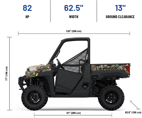 | Overall Vehicle Size (L x W x H) | 120 x 62.5 x 77 in (305 x 158 x 196 cm) |
