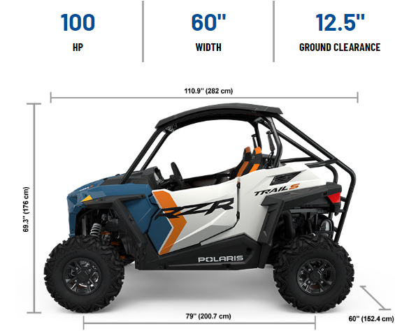 | Overall Vehicle Size (L x W x H) | 110.9 x 60 x 69.3 in (282 x 152.4 x 176 cm) |