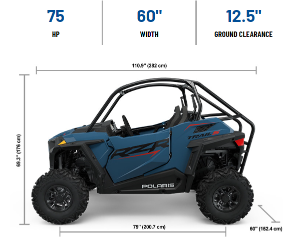 | Overall Vehicle Size (L x W x H) | 110.9 x 60 x 69.3 in (282 x 152.4 x 176 cm) |