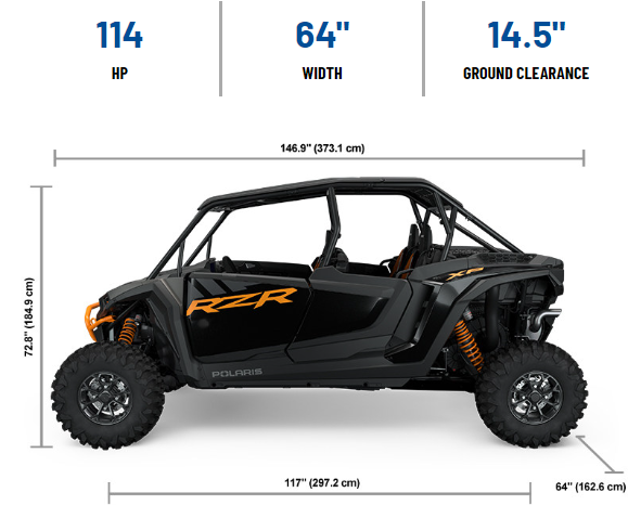 | Other Standard Features | Color Matched Seats, Premium Paint & Graphics, Color-Matched Dash & Bumper, 900-W Charging System, 6-Position Pulse Bar, Tilt Steering, Poly Sport Roof, Rockford Fosgate® Stage 3 Audio, RIDE COMMAND, Rear Camera, Accent Lighting, Adjustable 4-Point Subzero Harnesses, Front Tow Loop, Front Bumper |