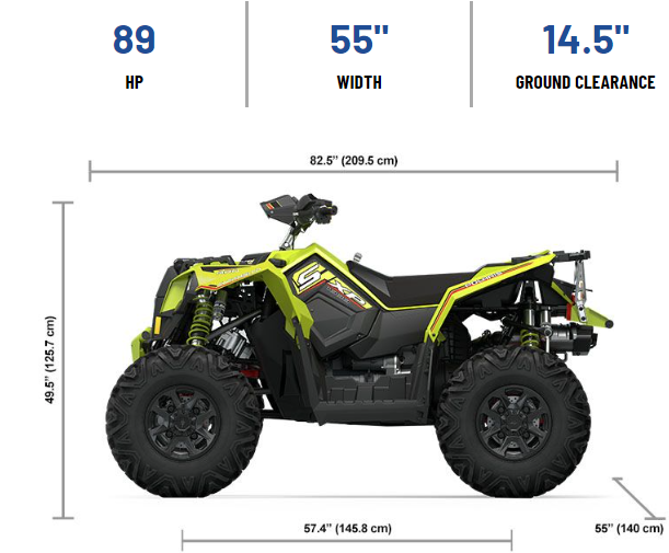 | Overall Vehicle Size (L x W x H) | 82.5 x 55 x 49.5 in (209.5 x 140 x 125.7 cm) |