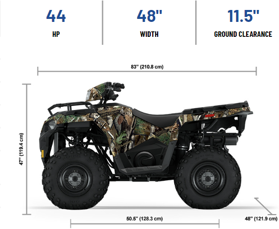 Find specifications below for the 2024 Polaris Sportsman 570 Polaris Pursuit Camo ATV. Specs include engine, horsepower, transmission/final drive, ground clearance, travel, engine braking system, instrumentation, lighting, suspension, payload capacity, hitch type, towing capacity, cargo system and tires.