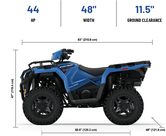 | Overall Vehicle Size (L x W x H) | 83 x 48 x 47 in (210.8 x 121.9 x 119.4 cm) |