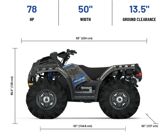 | Front/Rear Brakes | Single Lever 4-Wheel Hydraulic Disc with Hydraulic Rear Foot Brake |